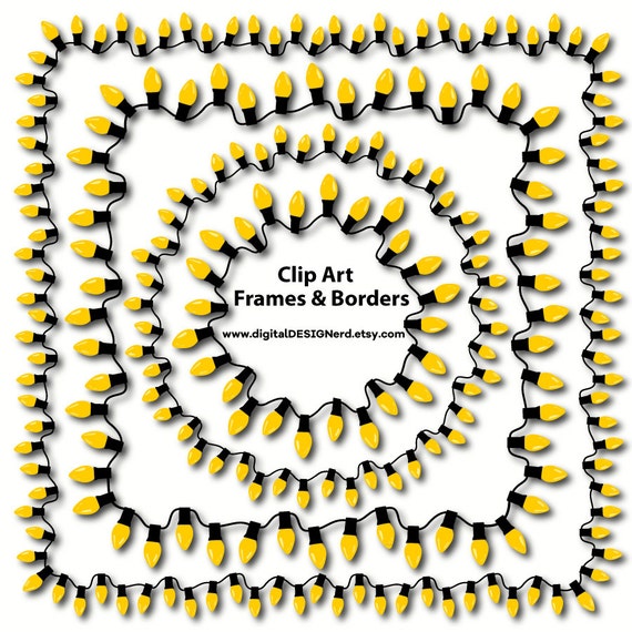 Clip Art Frames Borders Christmas String Lights Yellow Bulbs Set Of 18 Digital Scrapbook Embellishments Fall Holiday Christmas